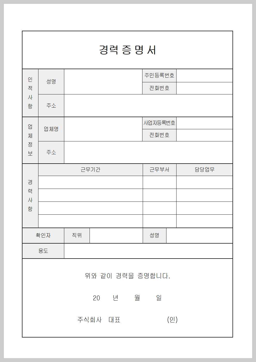 최대한 간편하고 깔끔한 경력증명서 서식을 무료로 공유드립니다!