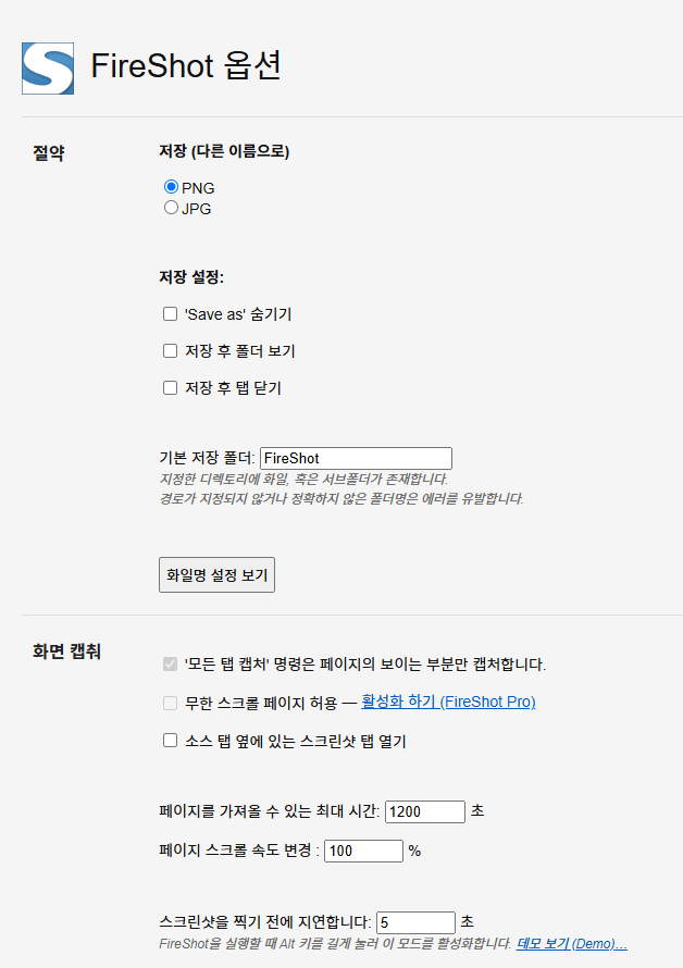 화면 캡춰 부분에 '무한 스크롤 페이지 허용 - 활성화 하기 (FireShot Pro)' 이 부분을 클릭해주세요.