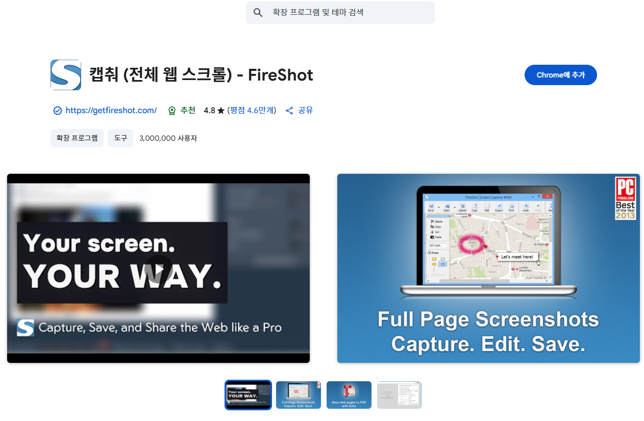 아래 링크를 클릭해서 들어가시면 화면캡처 크롬 확장 프로그램을 바로 설치하실 수 있어요.