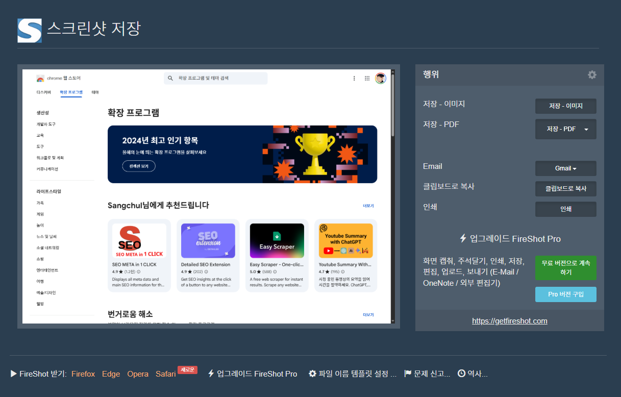 프로 버전에서는 웹페이지 전체를 자동 스크롤하여 캡처할 수 있어요