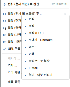 캡춰 (현재 화면)을 누르시면 크롬에 보여지는 화면 그대로 캡처가 되요. 단축키도 있네요.