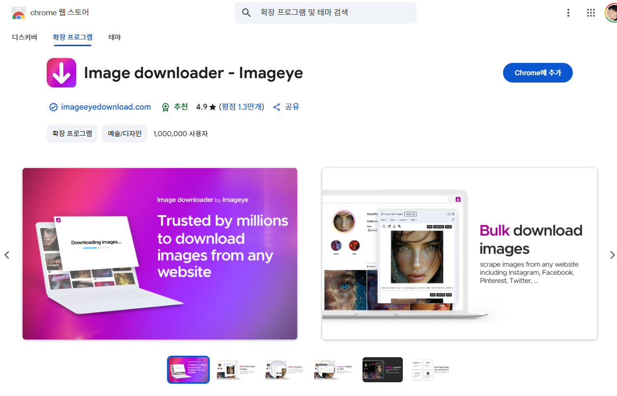 먼저, 크롬 확장프로그램 Image downloader - Imageye 를 크롬에 추가합니다.