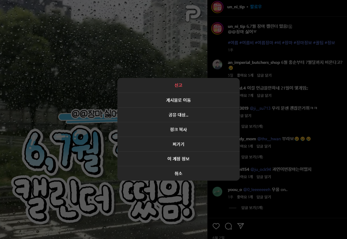 그럼 바로 사진을 다운 받고 싶은 인스타그램 게시물로 가볼까요?!